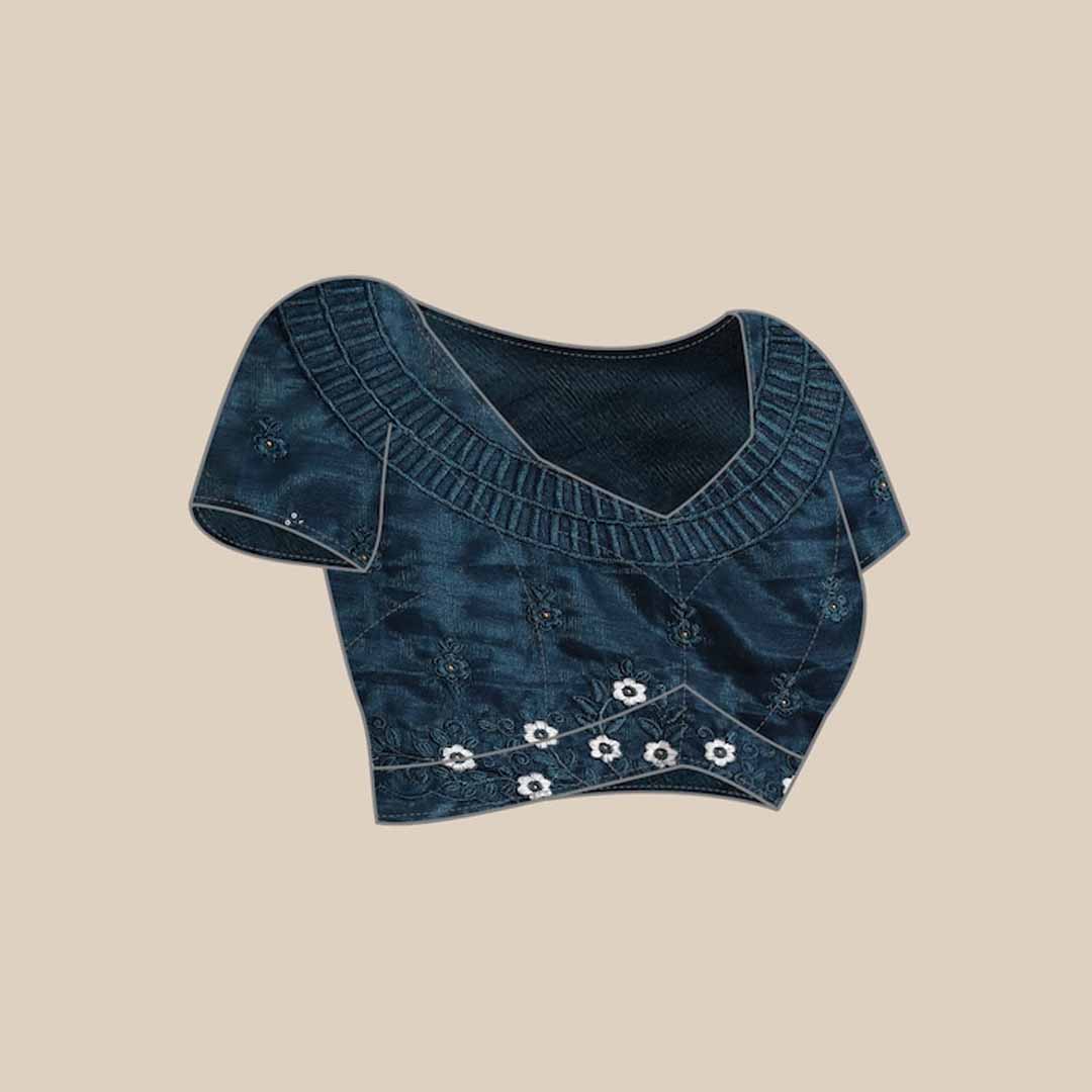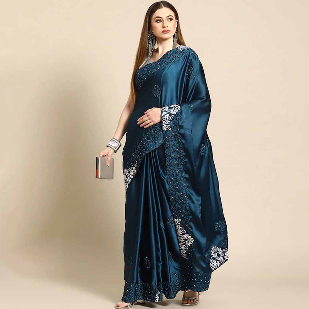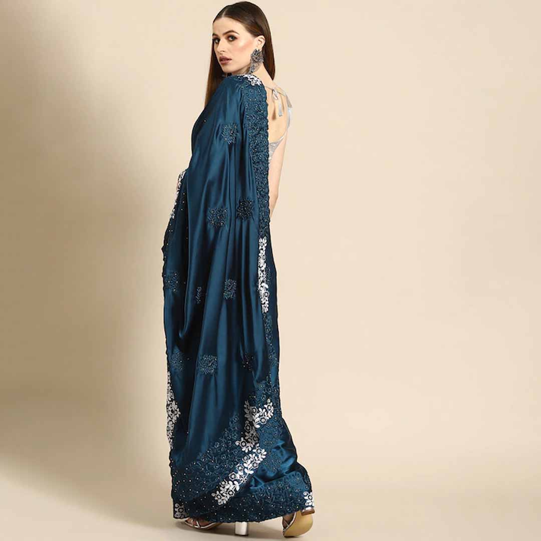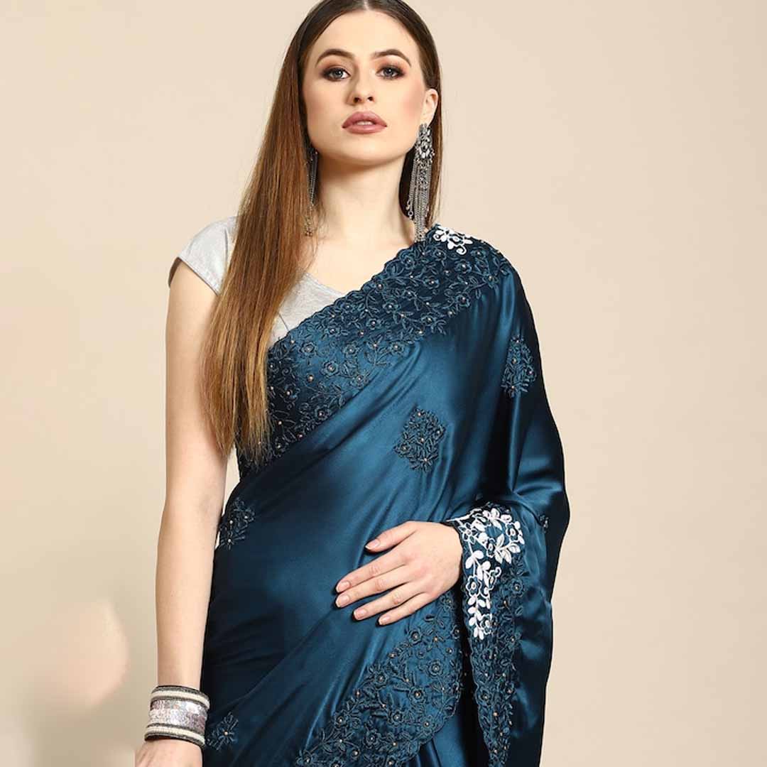 Blue saree Floral woven design saree with woven design border Has embroidered detail