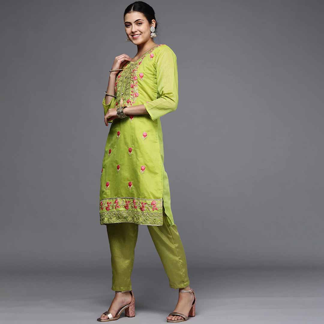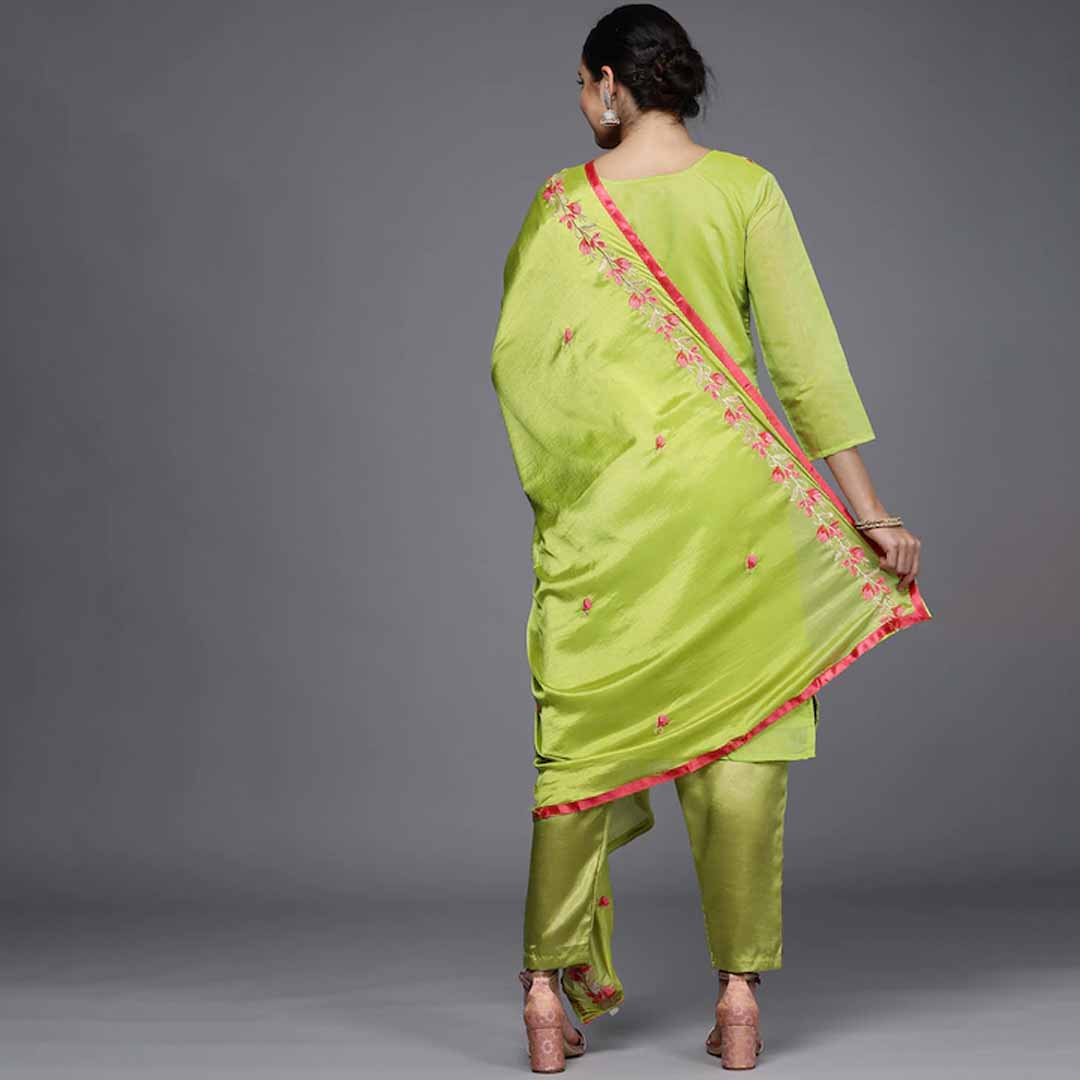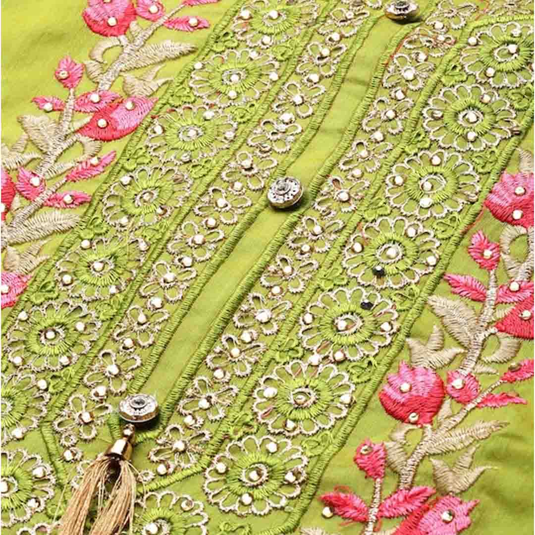 Green embroidered unstitched dress material