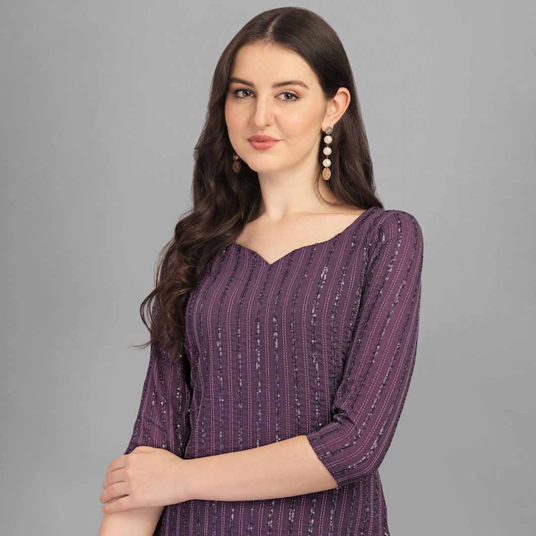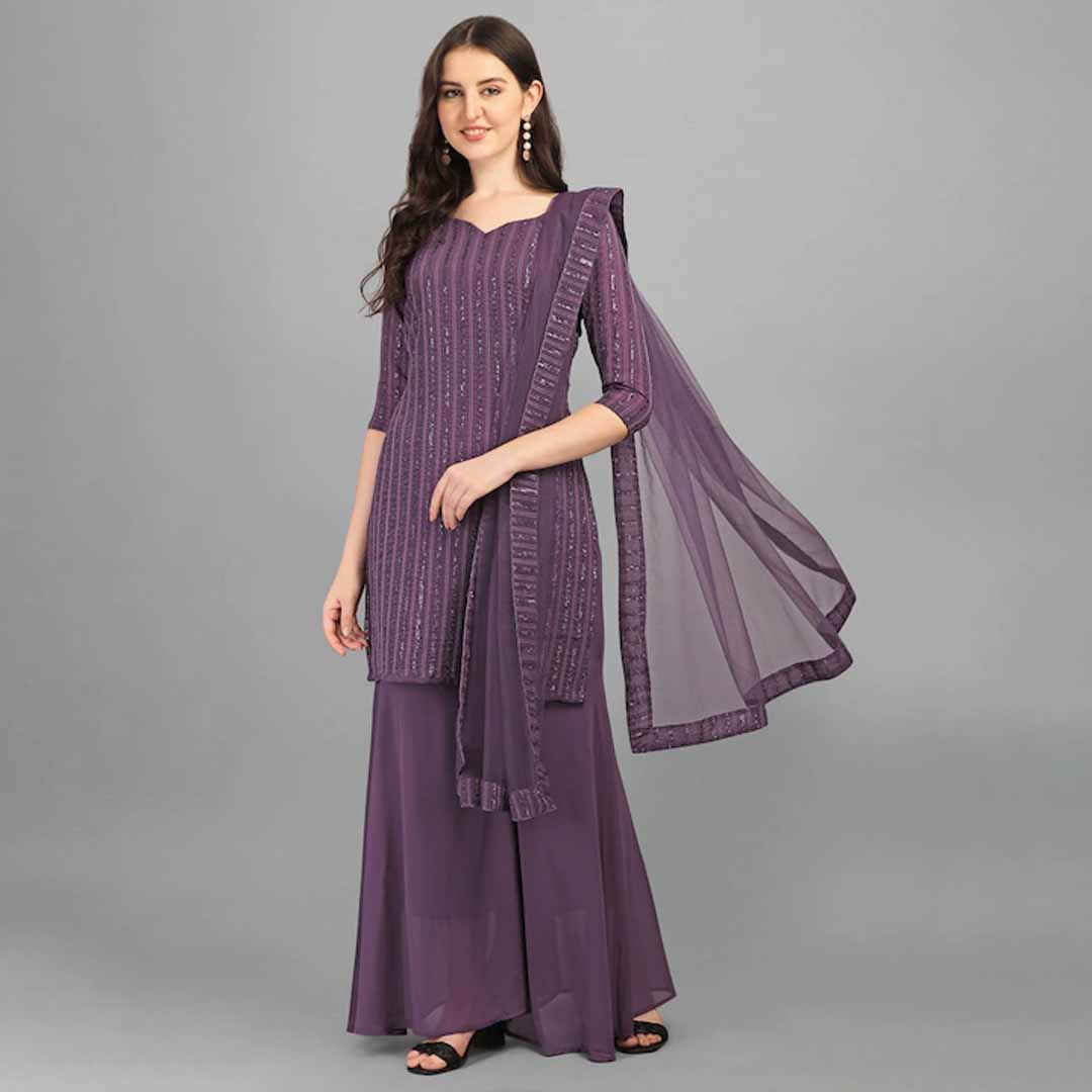 Kurta fabric: heavyFaux GeorgetteBottom fabric: heavyFaux GeorgetteInner Fabric :- Royal CrepeDupatta fabric: NetHand Wash