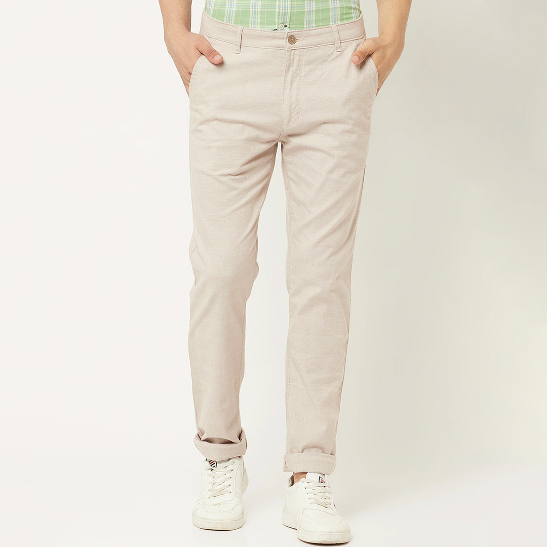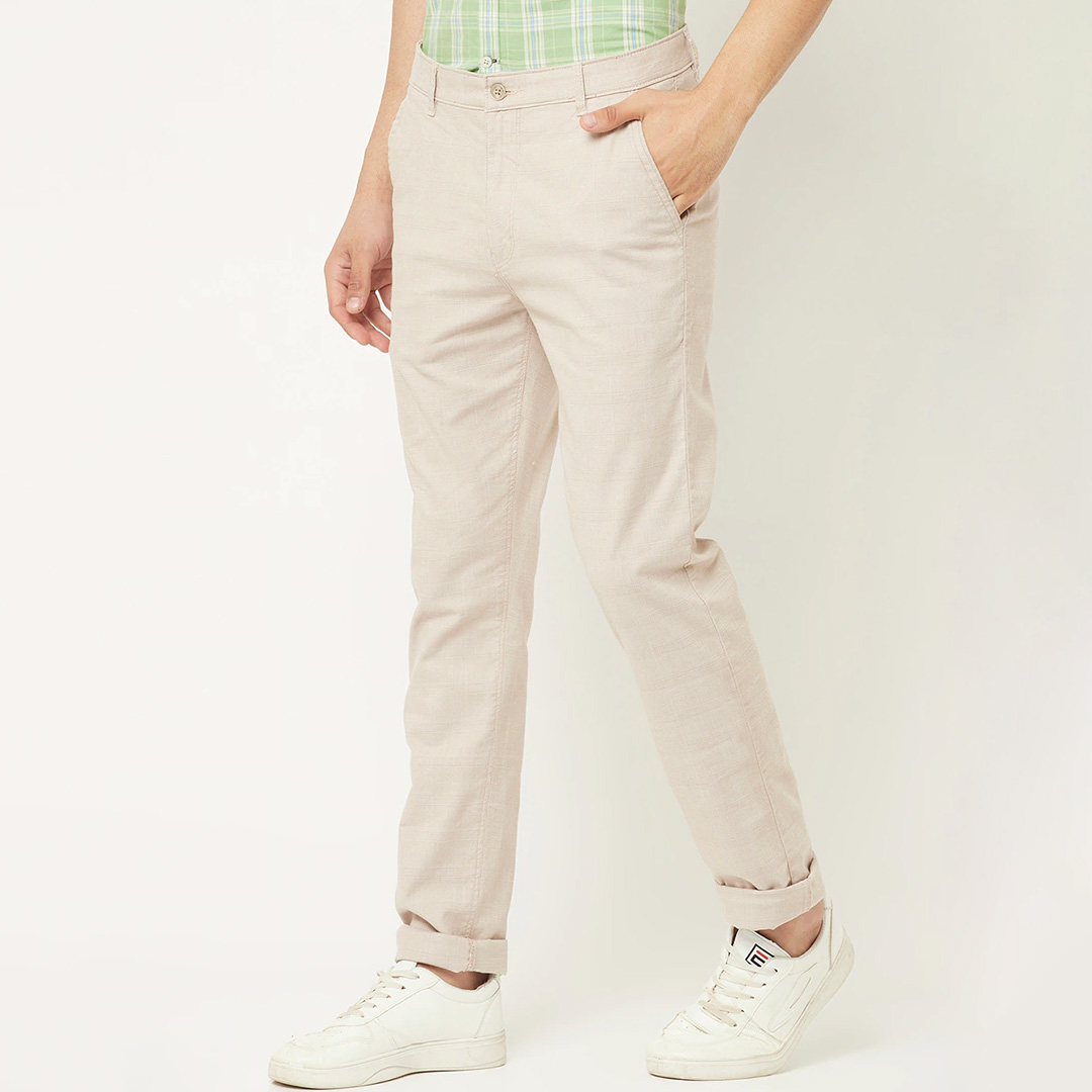 versatile and distinct trousers fabricated in cotton and spandex with the classic 5 pocket styling. falling on in a neat look that tapers at full length, this pair of trousers comes tailored to a slim fitting silhouette and a windowpane check texture for modern outline.