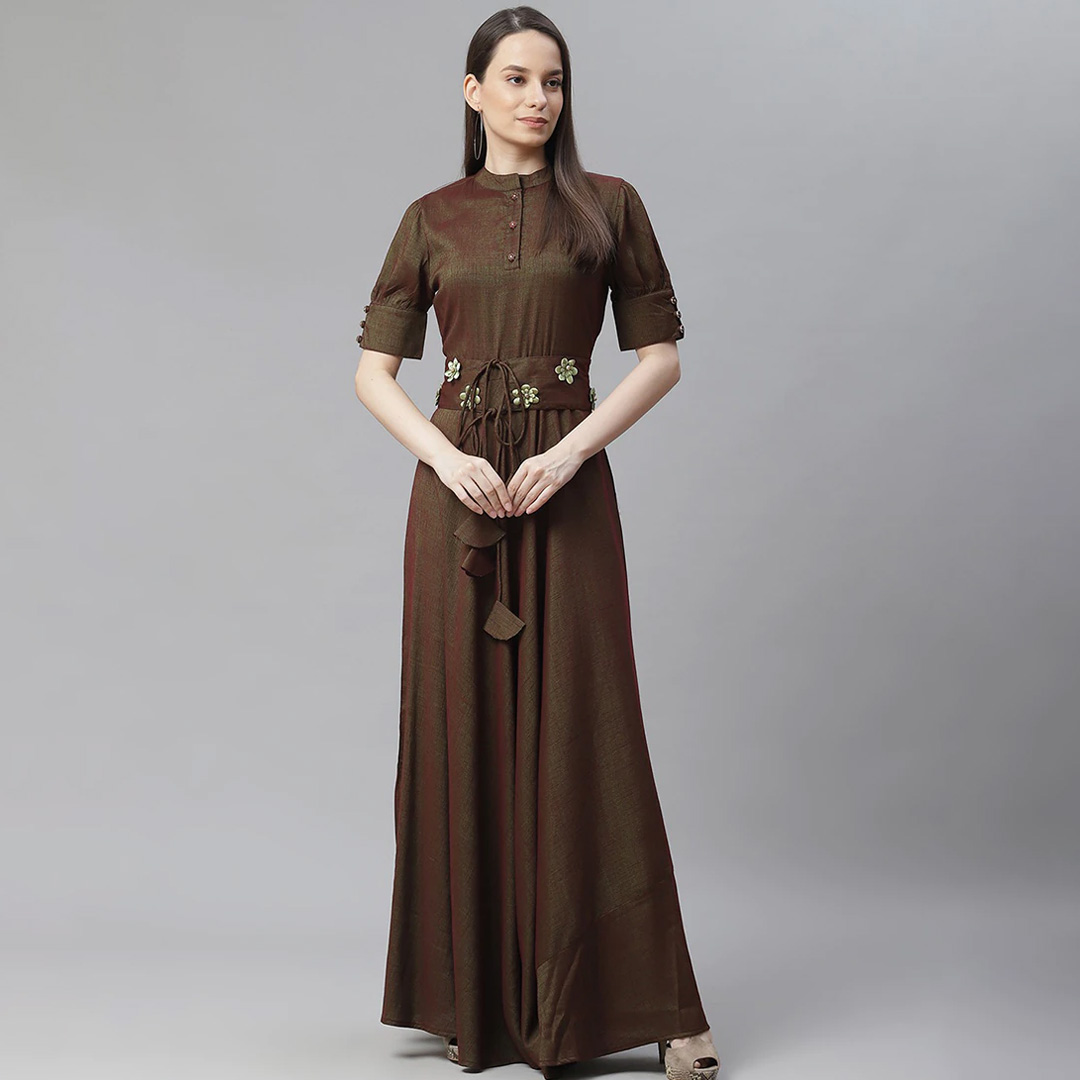 tie front solid maxi dress trend : tie back looking for some awesome collection of dresses? well, lay your hands on this dress and also get the option of choosing from green colour. dress up in a soothing pattern and don this dress made of rayon material.