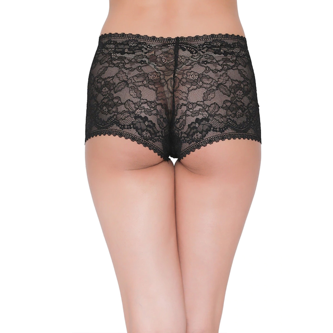 Black self design lace low-rise bowshots for women
