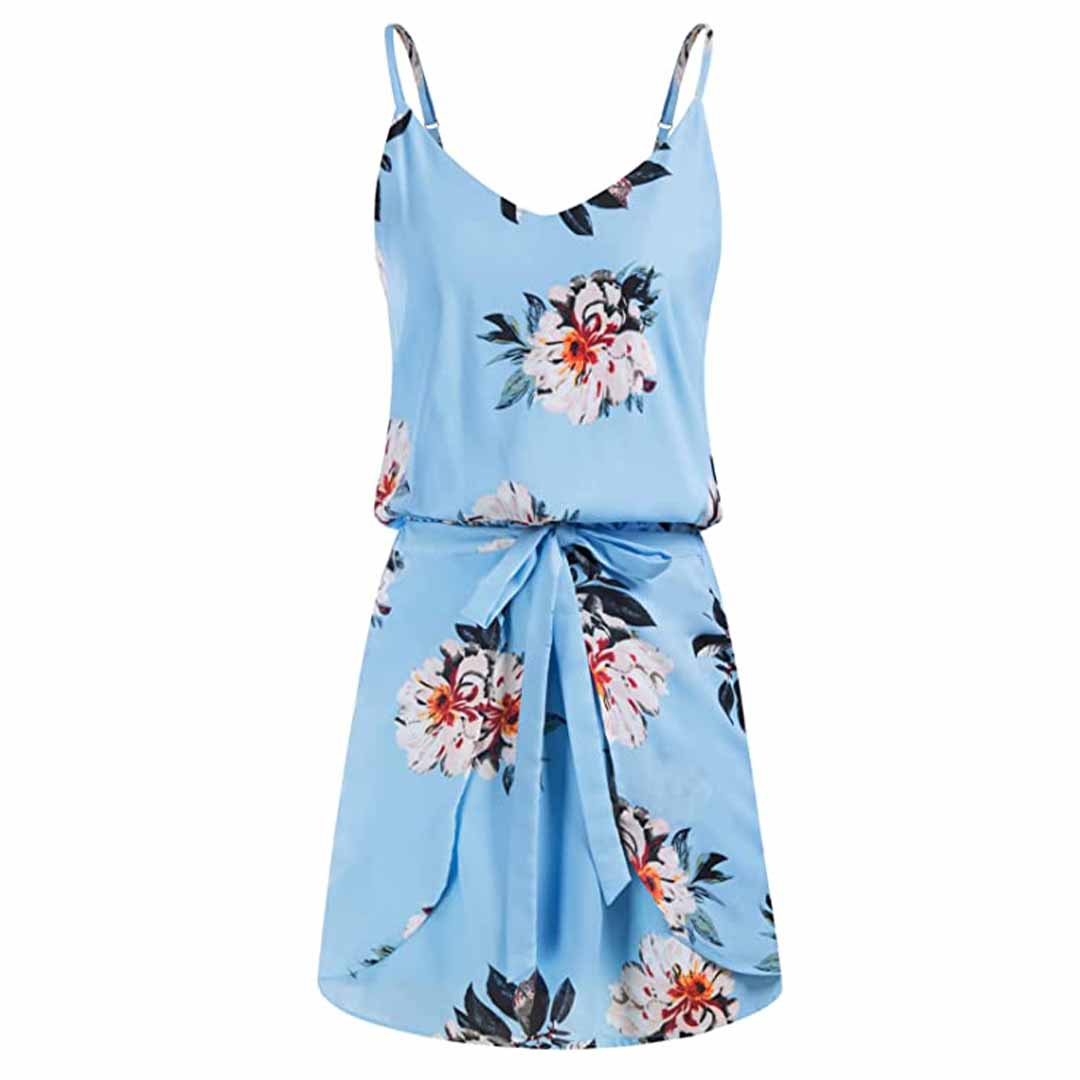Print Dress Spaghetti Strap V Neck Mini Dress