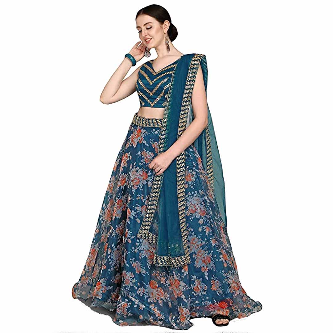 Sea Fashion Basket and Green Printed Lehenga Choli