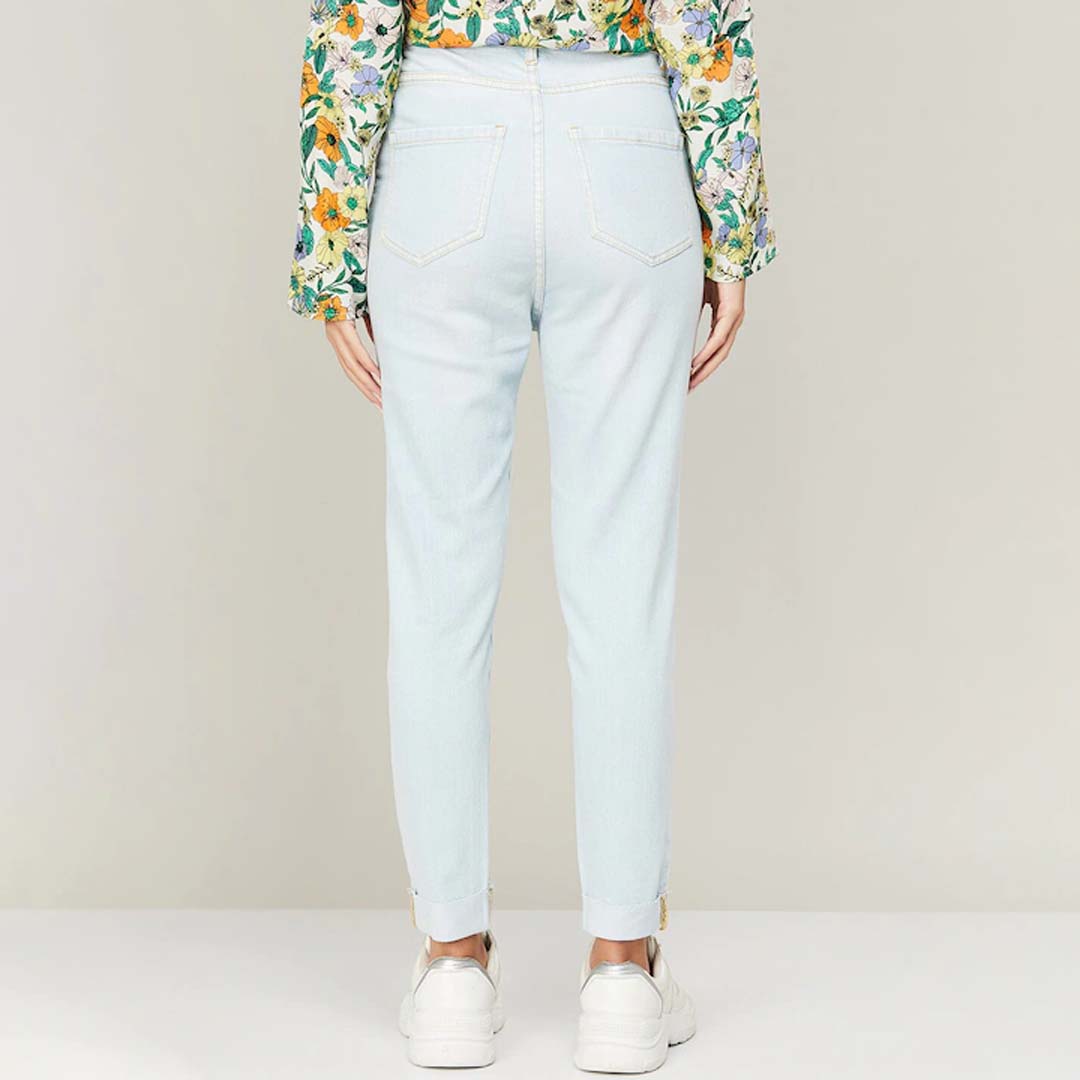 Size & Fit Slim fit, mid-rise Mildly distressed Non stretchable 5 pocket Length: cropped Fit: Slim Fit Non Stretchable The model (height 5'8) is wearing a size 28 Material & Care Material: Cotton; Machine Wash